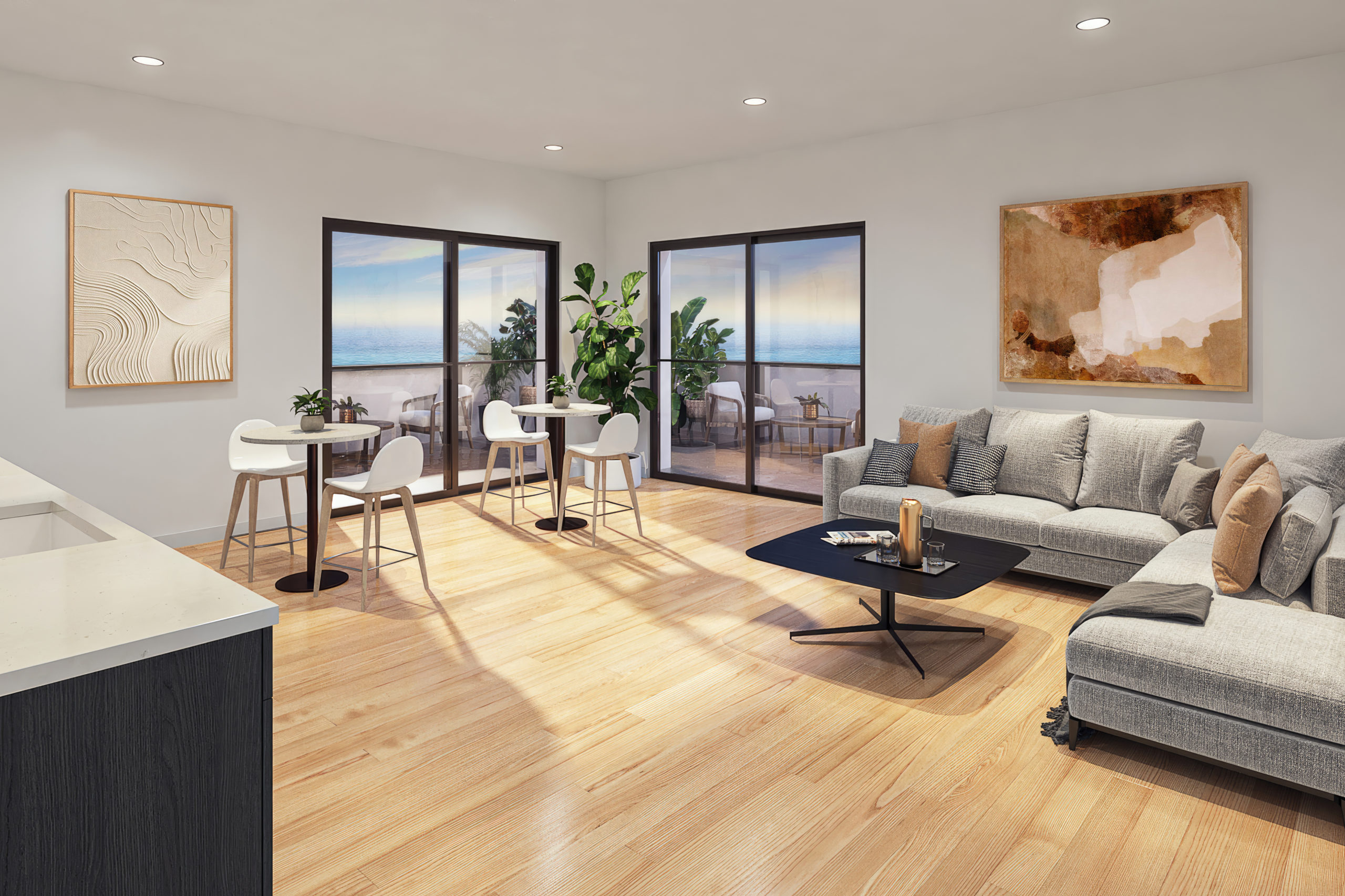 In addition to luxury homes, Encore also offers a rich array of amenities to complement its coastal location – like a rooftop lounge with panoramic ocean views.